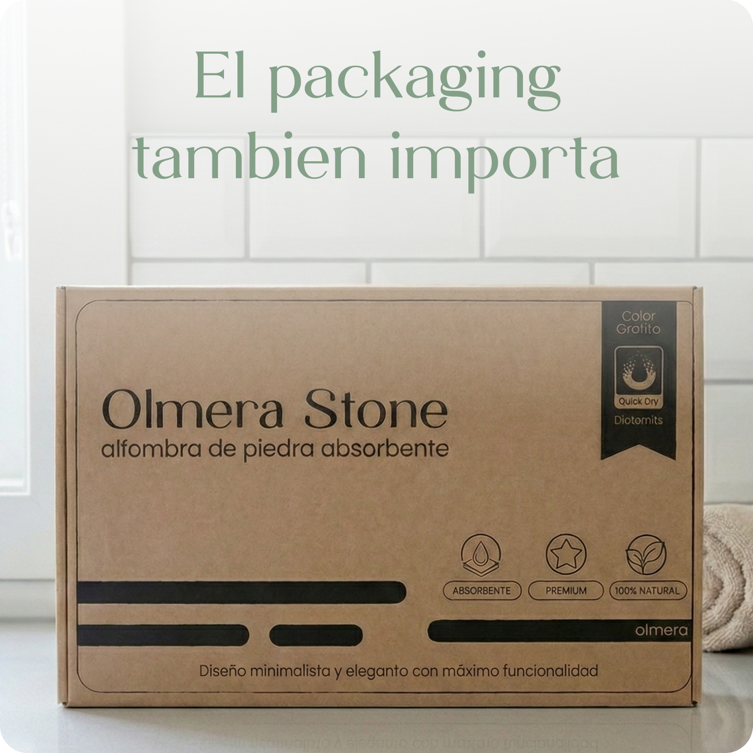 Es un material natural poroso, altamente absorbente y de secado rápido, ideal para mantener el baño seco y libre de humedad. Además, es resistente, duradero y ecológico.
